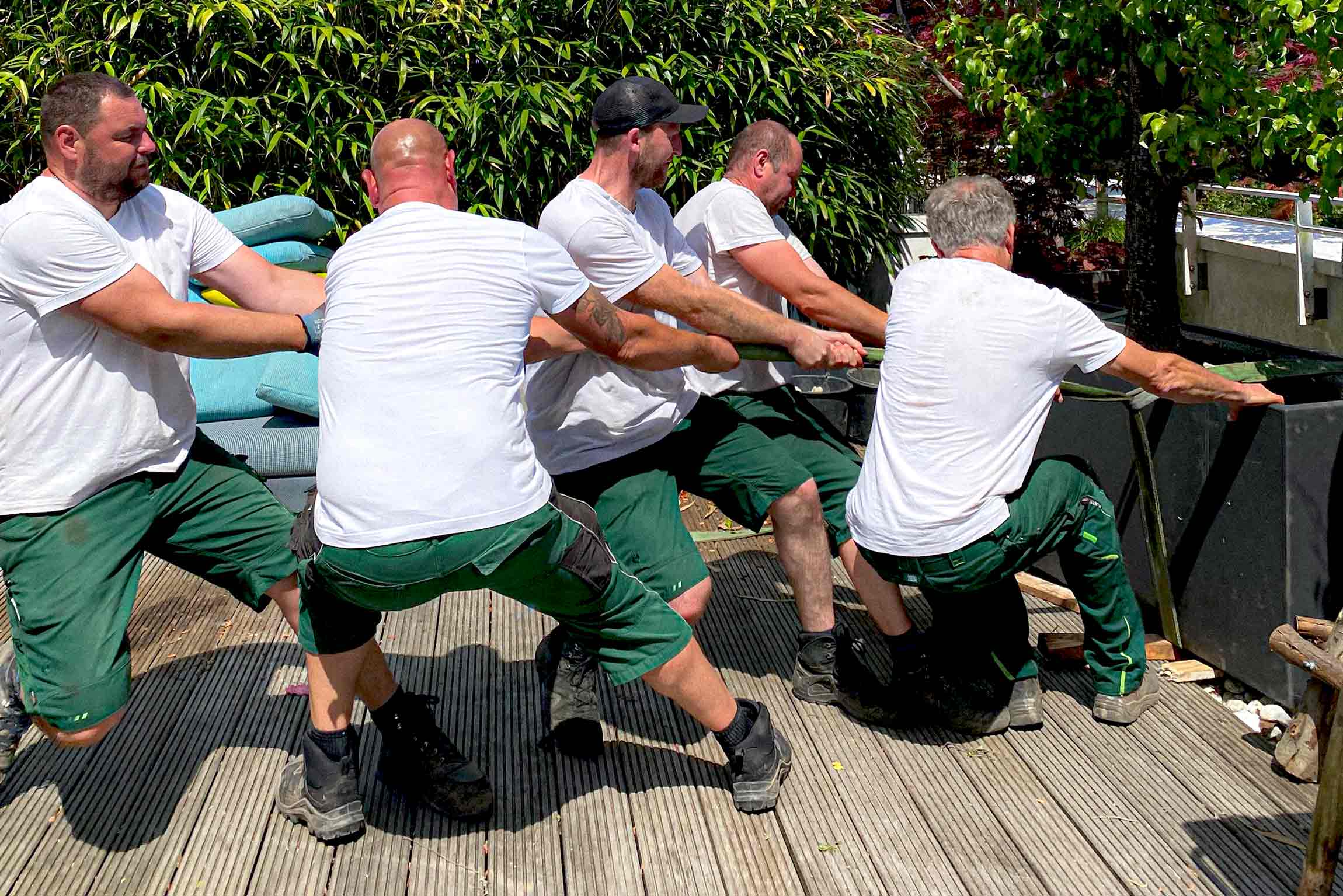 „Wir ziehen alle an einem Strang und realisieren zusammen unsere schönen Gartenprojekte. Wie nehmen jede Herausforderung an und sind am Ende des Tages stolz darauf, was wir gemeinsam geschaffen haben.“