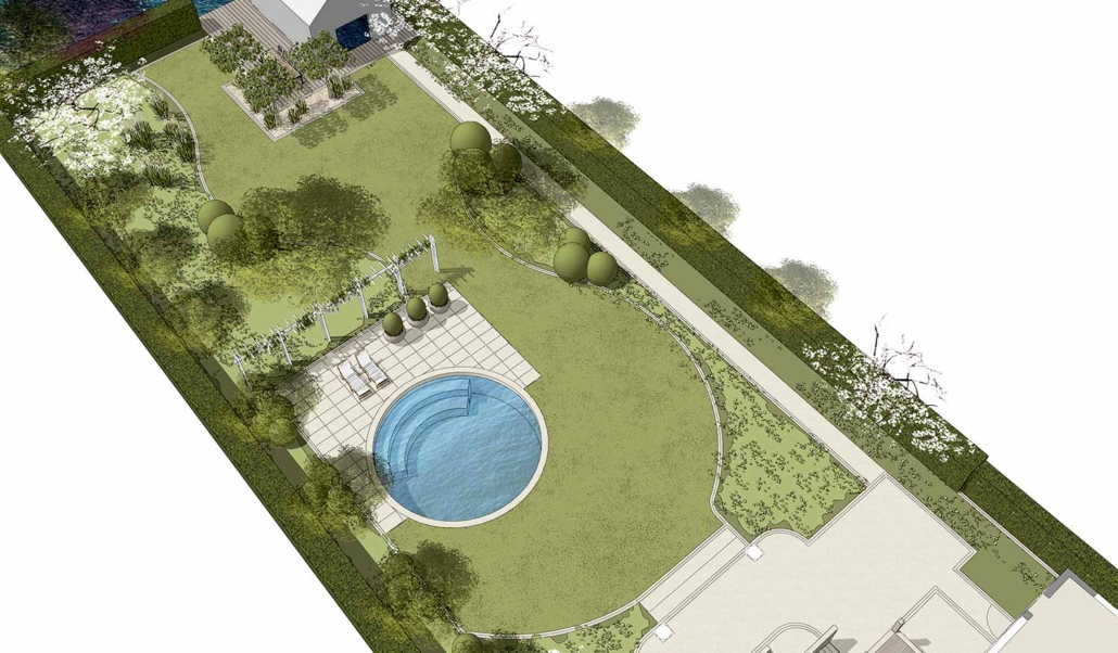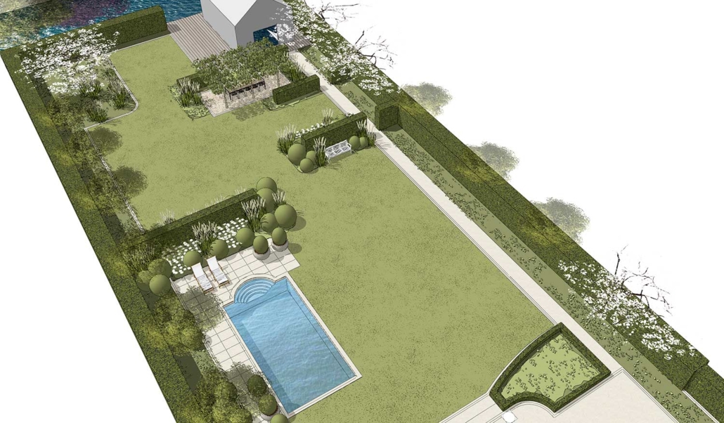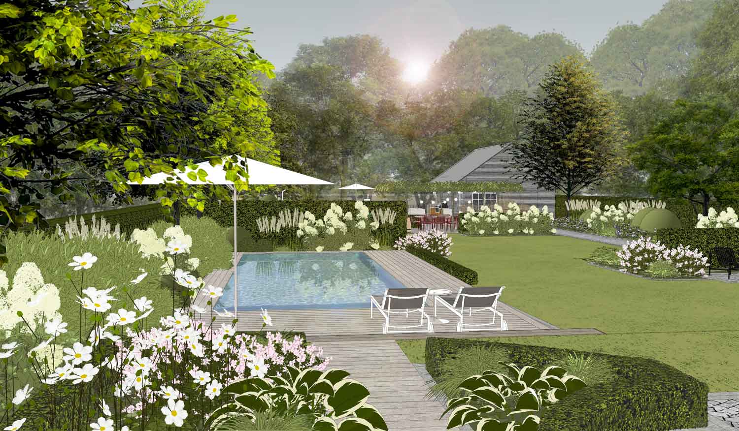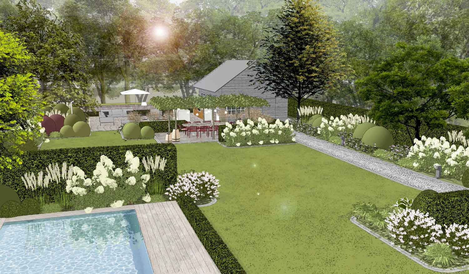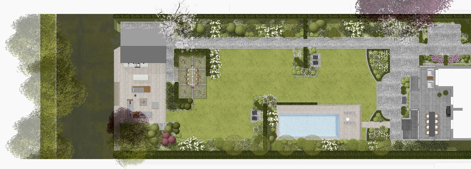 Wir wünschen uns einen klar strukturierten Garten, der zeitlos ist und einen hohen Komfort für uns als Familie bietet. Die Gestaltung soll ruhig und harmonisch sein, der Garten soll in erster Linie grün und weiß bepflanzt sein, die Pflanzen dürfen sowohl Struktur geben als auch blühend sein. Wir träumen von einem großen Pool und einem gemütlichen Aufenthaltsbereich am Wasser, in Verbindung mit einem großzügigen Essplatz für schöne Stunden mit Familie und Freunden.