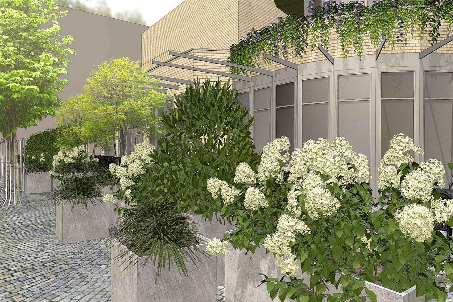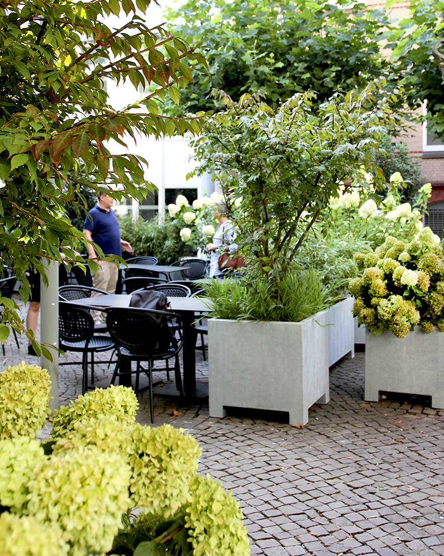 Mit Liebe zum Detail und schönen Pflanzen haben wir den Außenbereich des Restaurants „Casse Croûte“ in Hamburg gestaltet, welches sich inmitten eines ruhigen Innenhofs, eingebettet zwischen Wohn- und Geschäftshäusern befindet. Durch eine großzügige Bepflanzung in schönen Kübeln schaffen wir eine natürliche Abgrenzung zum öffentlichen Raum und vermitteln den Gästen so das Gefühl von Ruhe und Privatsphäre.